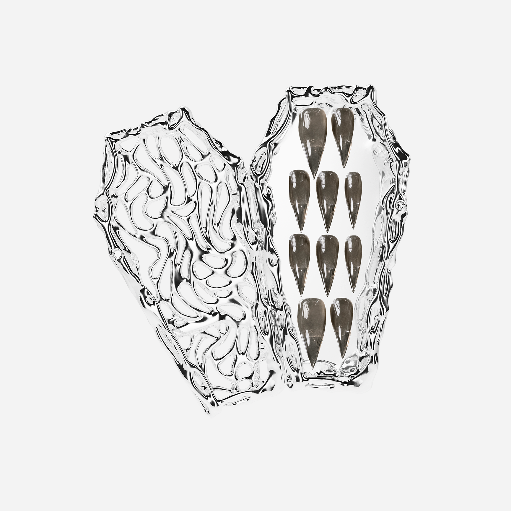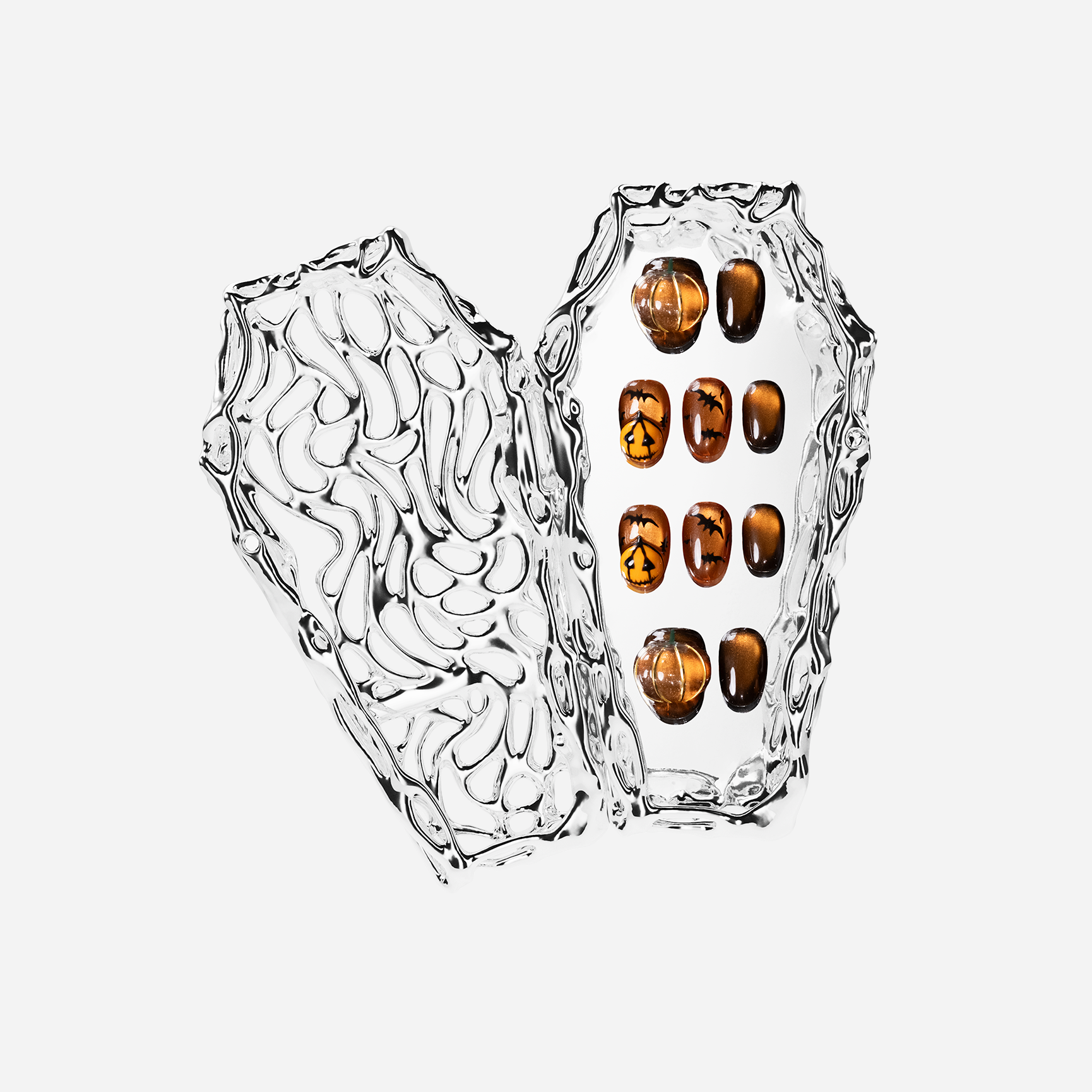 13 NEW HALLOWEEN THEMED PRESS-ON NAIL DESIGNS IN A LIMITED EDITION 'LIQUID METAL' COFFIN