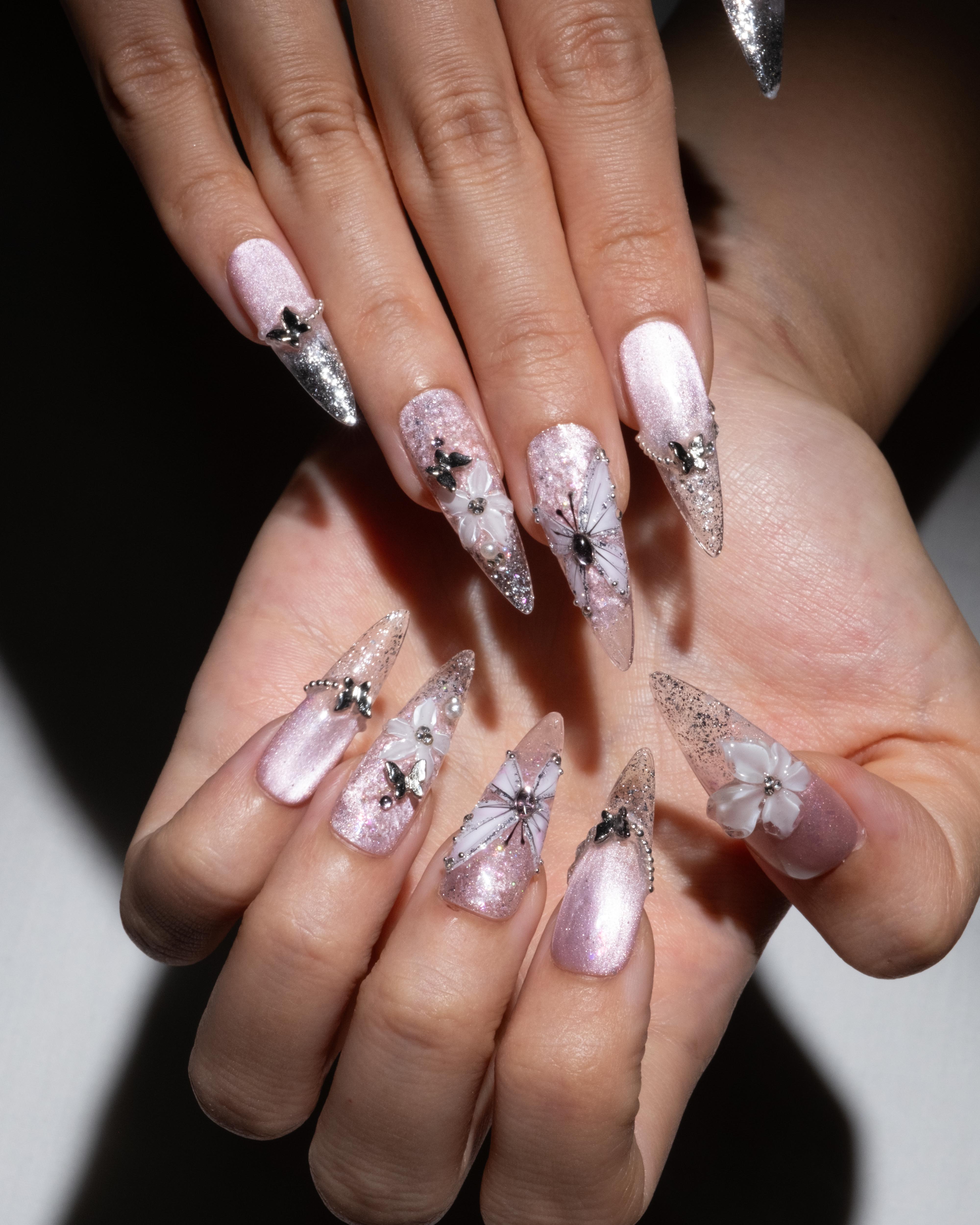 Each Nailcissist set is carefully constructed from premium gels, polishes and 3d charms featuring bold and edgy designs. Our team of in-house nail technicians take meticulous care when creating your press-ons with some sets taking upwards of 4 hours to craft.